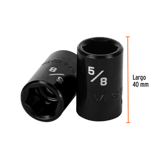 Proveedor:TruperDado de impacto de 5/8', 6 puntas cuadro 1/2', Truper Caja con 6, 13379Fabricado en acero al cromo molibdeno con acabado fosfatado resistente a la corrosión Sistema de sujeción Truper-Drive con puntas convexas que...