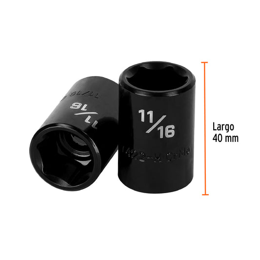 Proveedor:TruperDado de impacto de 11/16', 6 puntas, cuadro 1/2', Truper Caja con 6, 13380Fabricado en acero al cromo molibdeno con acabado fosfatado resistente a la corrosión Sistema de sujeción Truper-Drive con puntas convexas que...
