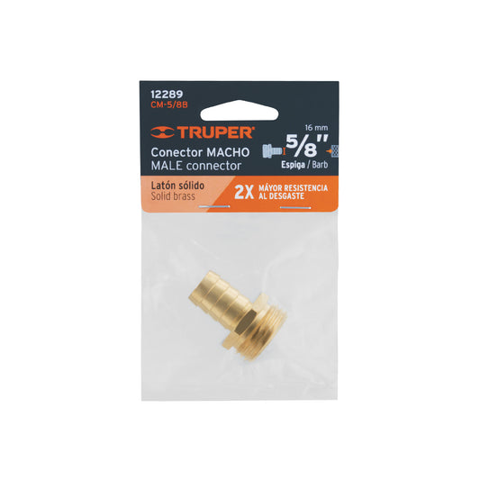 Proveedor:TruperConector 5/8' macho de latón sólido para manguera, Truper Caja con 6, 12289Cuerpo de latón sólido, 2X mayor resistencia al desgaste Conector macho Ideal para reparar y unir mangueras Requiere uso de...