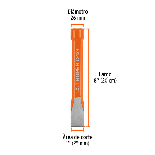 Proveedor:TruperCincel de corte frío 7/8 x 8' con grip, Truper Caja con 4, 12277Fabricado en acero al cromo vanadio Grip ergonómico de TPR que absorbe vibraciones y protege la mano de golpes accidentales ...