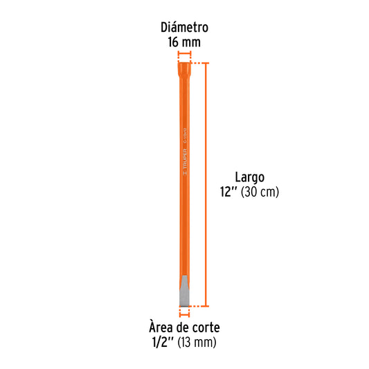 Proveedor:TruperCincel de corte frío de 1/2 X 12', Truper Caja con 6, 12124Fabricado en acero al cromo vanadio Cabeza grande que incrementa el área de impacto Filo endurecido para mayor resistencia a...