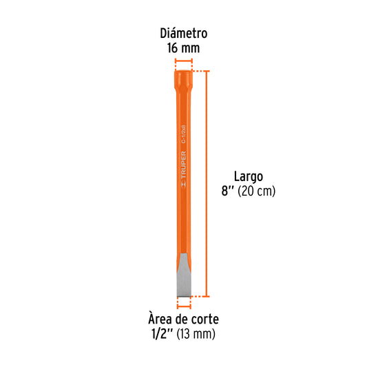 Proveedor:TruperCincel de corte frío de 7/8 X 8', Truper Caja con 6, 12151Fabricado en acero al cromo vanadio Cabeza grande que incrementa el área de impacto Filo endurecido para mayor resistencia a...