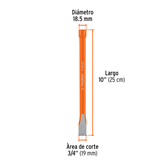 Proveedor:TruperCincel de corte frío de 7/8 X 10', Truper Caja con 6, 12154Fabricado en acero al cromo vanadio Cabeza grande que incrementa el área de impacto Filo endurecido para mayor resistencia a...