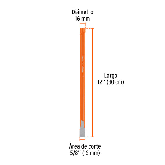 Proveedor:TruperCincel de corte frío de 3/8 X 10', Truper Caja con 12, 12112Fabricado en acero al cromo vanadio Cabeza grande que incrementa el área de impacto Filo endurecido para mayor resistencia a...