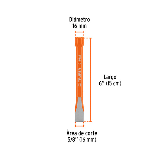 Proveedor:TruperCincel de corte frío de 1/2 X 6', Truper Caja con 6, 12115Fabricado en acero al cromo vanadio Cabeza grande que incrementa el área de impacto Filo endurecido para mayor resistencia a...