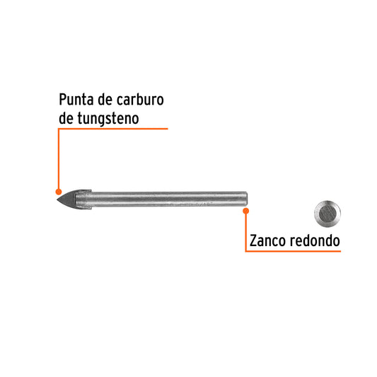 Proveedor:TruperBroca para vidrio y azulejo de 3/16', Truper Caja con 6, 11701Punta de carburo de tungsteno para cortes rápidos y sin despostilladuras Zanco redondo Ideal para perforar con velocidad baja Compatible con broqueros...
