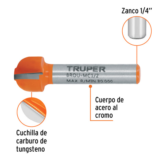Proveedor:TruperBroca para router, media caña, 1/2', Truper Caja con 3, 11462