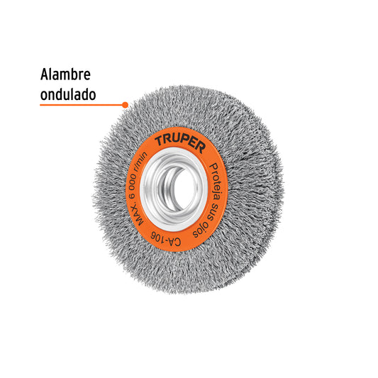 Proveedor:TruperCarda alambre ondulado 6' x 1-1/8' para esmeril, Truper Caja con 4, 11526Alambres ondulados de acero al carbono Acabado semifino Para limpieza de superficies Para esmeriles de banco Mayor flexibilidad