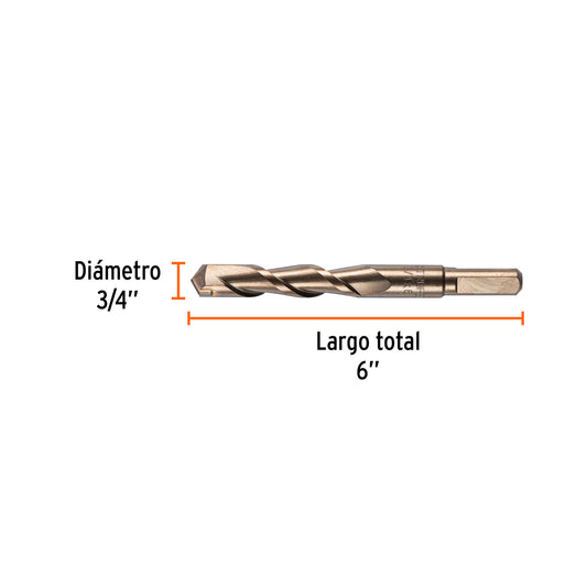 Proveedor:TruperBroca para concreto de 3/4 x 6', Truper, 11242Cuerpo de acero al cromo que ofrece mayor resistencia al calentamiento Punta de carburo de tungsteno Zanco P3 antiderrapante Para...