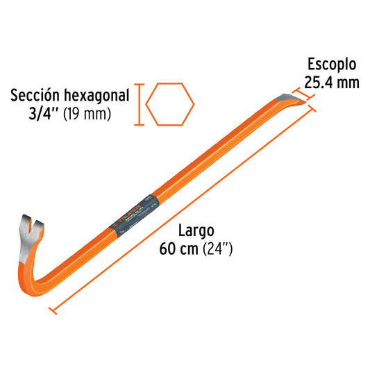 Proveedor:TruperBarreta de uña de 3/4' x 60 cm, Truper Caja con 3, 10856Fabricada en acero con doble tratamiento térmico para mayor resistencia y durabilidad Uñas y escoplo pulidas Sección hexagonal