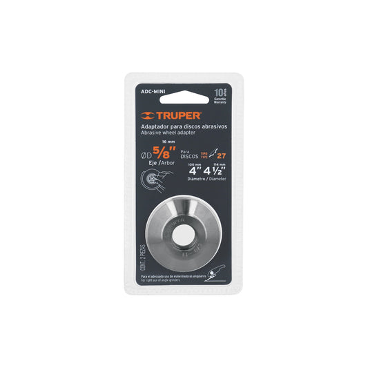 Proveedor:TruperAdaptador para discos abrasivos 4' y 4-1/2', tipo 42, 5/8-11 Caja con 6, 10544Para discos de 4" y 4 1/2"