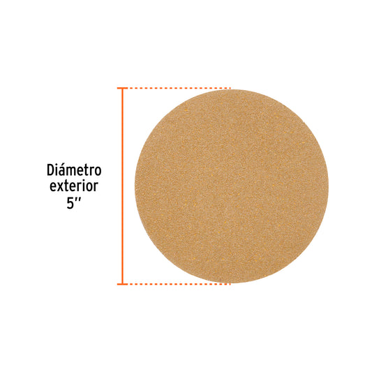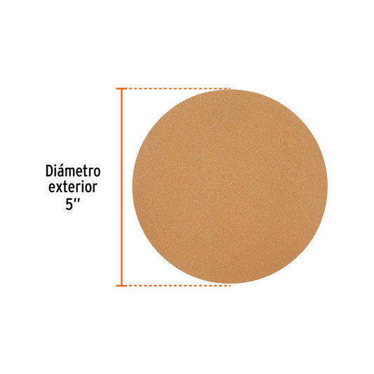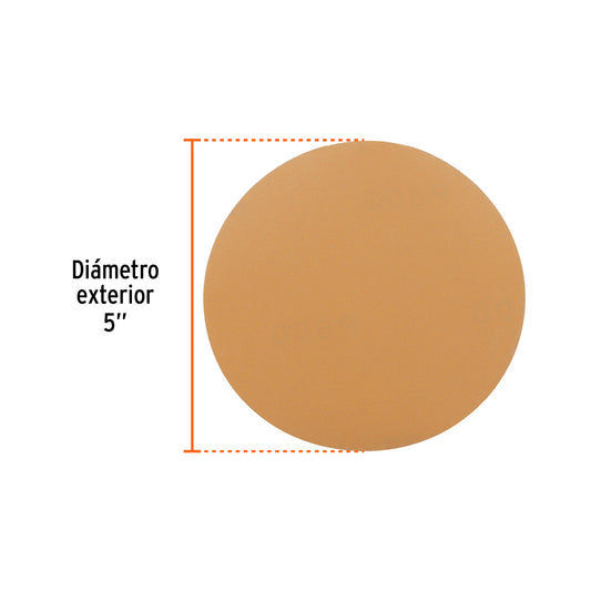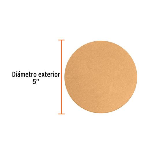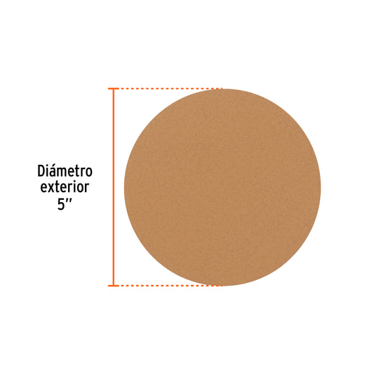 Proveedor:TruperCaja 5 discos de lija p/madera 5' grano 400, velcro, s/perf. Caja con 5, 103430Fabricado en óxido de aluminio Respaldo con fijación hook and loop Ideal para un acabado fino No deja marcas en...