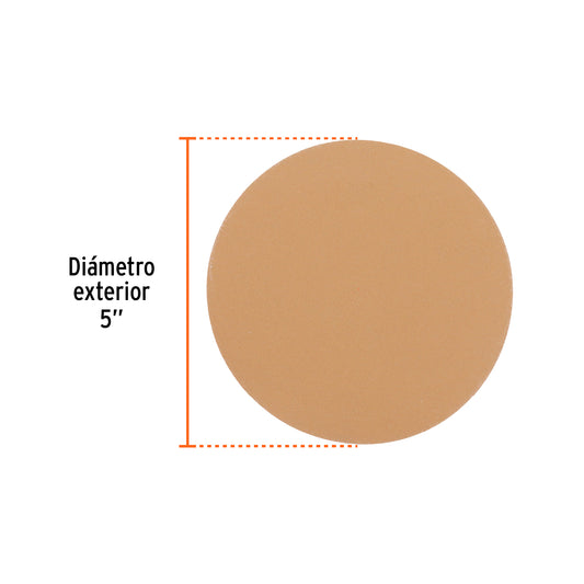Proveedor:TruperCaja 5 discos de lija p/madera 5' grano 240, velcro, s/perf. Caja con 5, 103428Fabricado en óxido de aluminio Respaldo con fijación hook and loop Ideal para un acabado fino No deja marcas en...