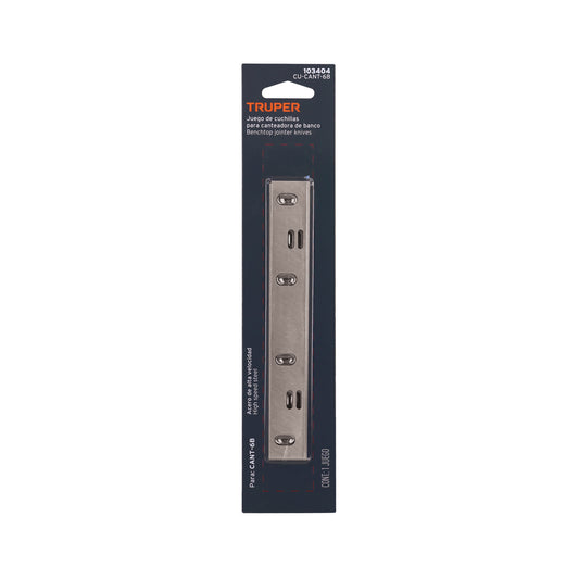 Proveedor:TruperCuchillas para canteadora CANT-6B, 2 pzs en blíster, TRUPER, 103404Fabricadas en acero Para canteadora de banco modelo CANT-6B marca Truper®