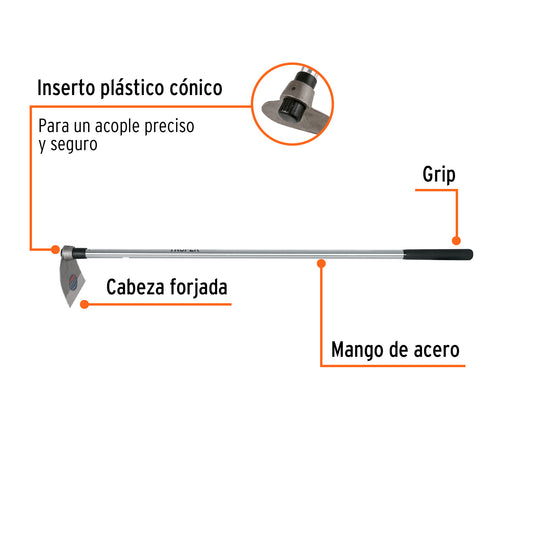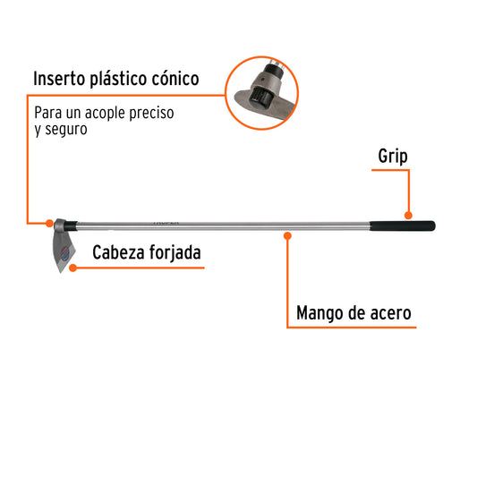 Proveedor:TruperAzadón Lane No.0 de 1.6 lb con mango de acero 54', Truper Caja con 4, 103104Cabeza forjada en una sola pieza con nervio central para mayor resistencia al impacto y disminución de la vibración, acabado pulido y...