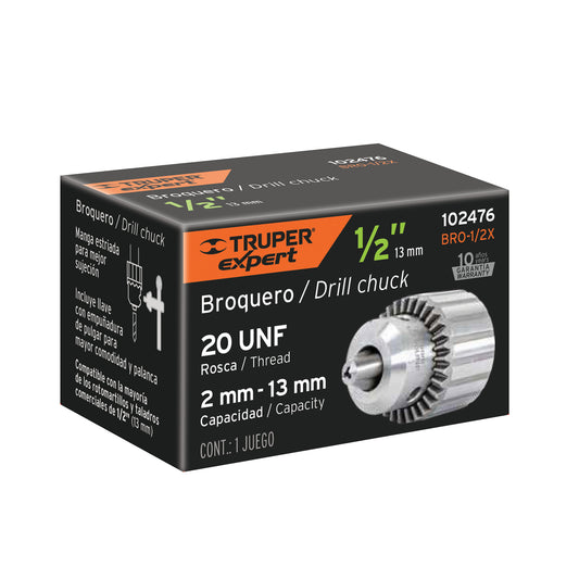 Proveedor:TruperBroquero uso rudo 1/2' con llave , EXPERT Caja con 2, 102476Firme sujeción de accesorios con mordazas y óptimo ajuste con llave para un mejor apriete Mayor vida útil por sus...