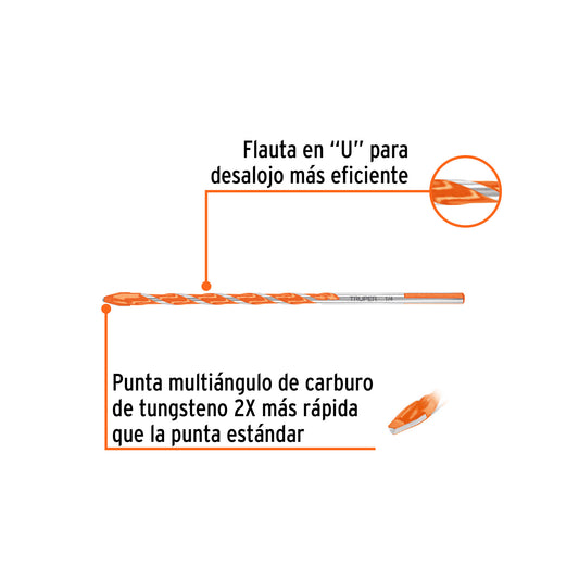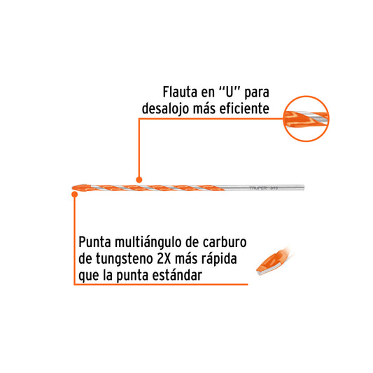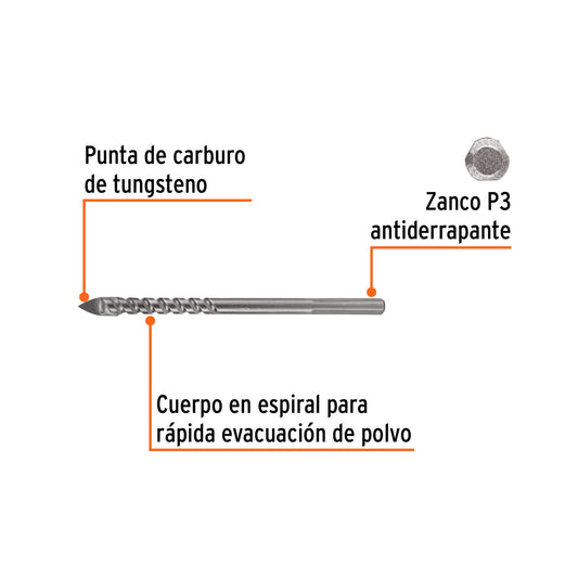 Proveedor:TruperBroca multimaterial 5/16 x 6', Truper Caja con 10, 101807Cuerpo de acero Punta multiángulo de carburo de tungsteno 2X más rápida que la punta estándar Zanco P3 de cambio rápido...