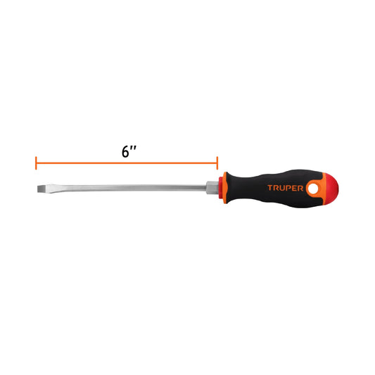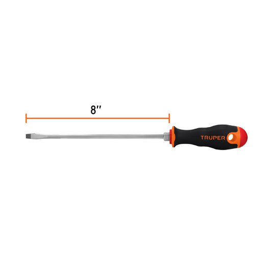 Proveedor:TruperDesarmador plano 1/4' x 8' mango Comfort Grip, Truper Caja con 6, 100833