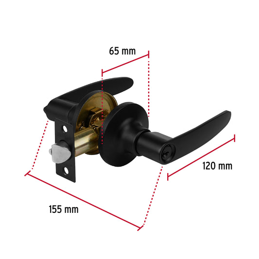 Proveedor:HermexCerradura manija 'Turín' p/recámara, negro, cilindro latón Caja con 3, 49852