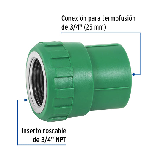 Proveedor:FosetAdaptador PPR 3/4' hembra con inserto metálico, Foset Caja con 10, 49886