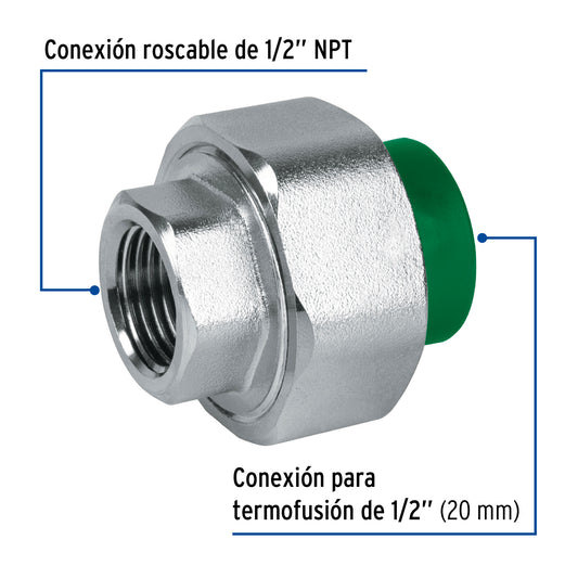 Proveedor:FosetTuerca unión PPR, mixta inserto metálico, 1/2', Foset Caja con 10, 49816