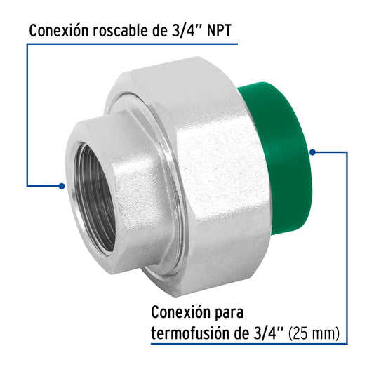 Proveedor:FosetTuerca unión PPR, mixta inserto metálico, 3/4', Foset Caja con 10, 49817
