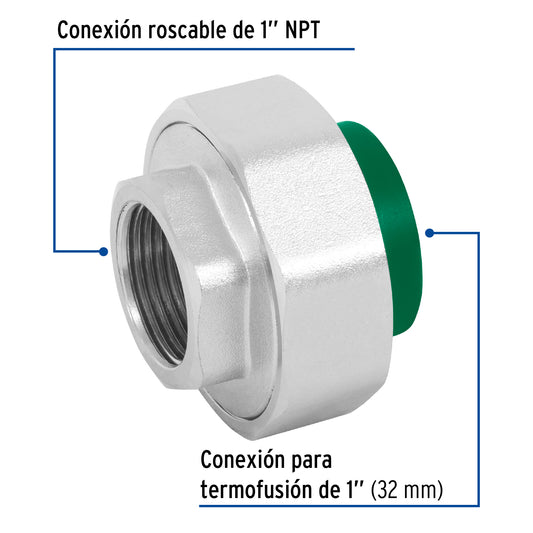 Proveedor:FosetTuerca unión PPR, mixta inserto metálico, 1', Foset Caja con 10, 49818