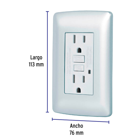 Proveedor:VolteckContacto dúplex falla a tierra GFCI, plata, línea Italiana Caja con 3, 49807