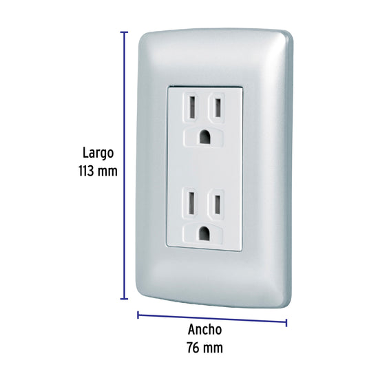 Proveedor:VolteckContacto dúplex aterrizado, color plata, línea Italiana Caja con 6, 49806
