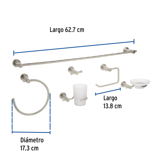 Proveedor:FosetJuego de 6 accesorios para baño acabado satín, Foset Element, 49682