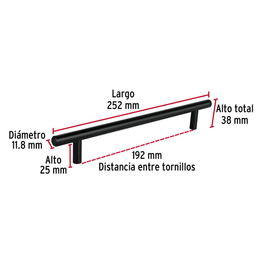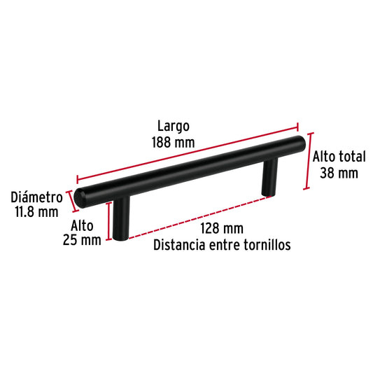 Proveedor:HermexJaladera de acero 192 mm, estilo 'Cilindro', negro, Hermex Caja con 12, 49734