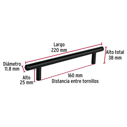 Proveedor:HermexJaladera de acero 160 mm, estilo 'Cilindro', negro, Hermex Caja con 12, 49733