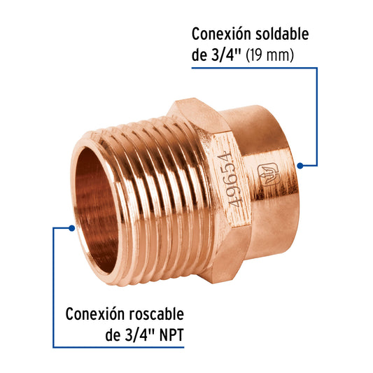 Proveedor:FosetConector de cobre, rosca exterior 3/4', Foset Caja con 20, 49654