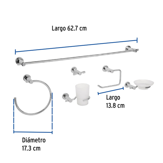 Proveedor:FosetJuego de 6 accesorios para baño acabado cromo, Foset Element, 49681