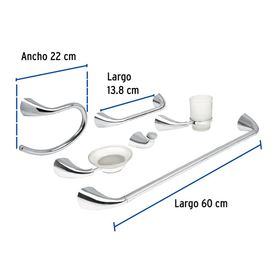 Proveedor:FosetJuego de 6 accesorios para baño metálicos, Foset Aero, 49640