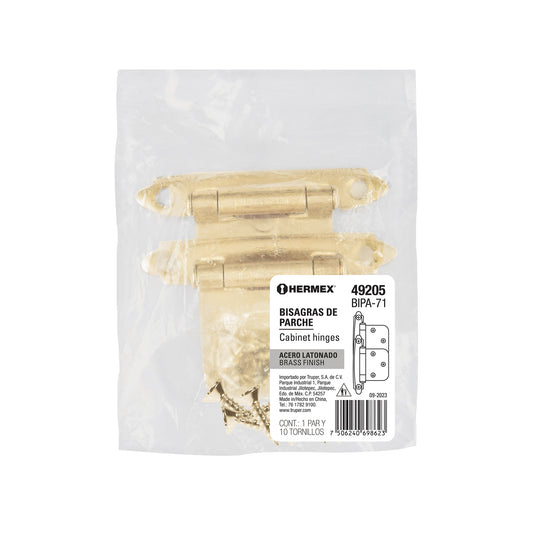 Proveedor:HermexBolsa con 2 bisagras parche de 7cm, latonado, Hermex Caja con 20, 49205Fabricadas en acero Fácil instalación Para gabinetes y muebles de cocina