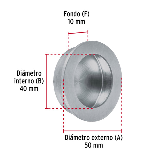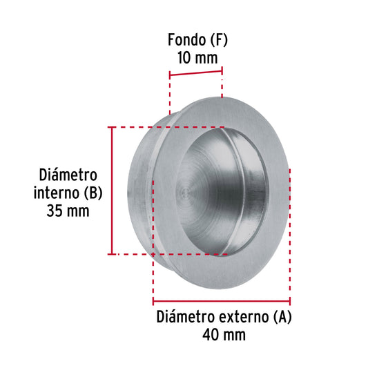 Proveedor:HermexJaladera de embutir circular No. 4 acabado cromo mate Caja con 10, 48999Fabricada en acero inoxidable Para cajones de madera y metal