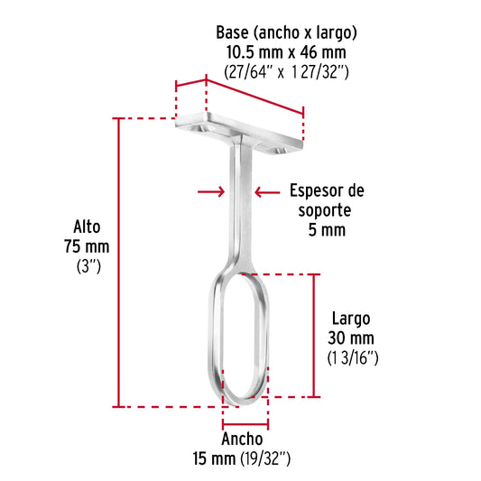 Proveedor:HermexSoporte central para tubo ovalado de clóset, Hermex Caja con 10, 48979Metálico acabado níquel Permite que el peso se distribuya uniformemente en la barra Para tubos ovalados marca Hermex®