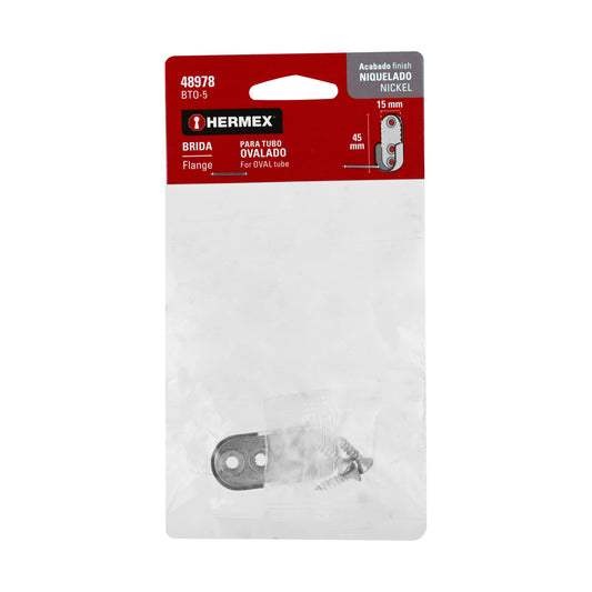 Proveedor:HermexBrida niquelada para tubo ovalado de clóset, Hermex Caja con 10, 48978Metálica acabado níquel Para tubos ovalados marca Hermex®