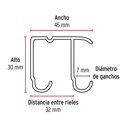 Proveedor:HermexSistema corredizo doble para riel superior de clóset, Hermex Caja con 10, 48971Para clóset de 2 puertas de 45 kg c/u con espesor 15 a 30 mm Ruedas de nylon y cuerpo...
