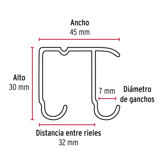 Proveedor:HermexRiel superior 'JJ' de aluminio para puerta corrediza 3 m Caja con 10, 48973Fabricado en aluminio Para puertas de clóset de hasta 45 kg Compatible con sistemas corredizos simple y doble como SC-01...