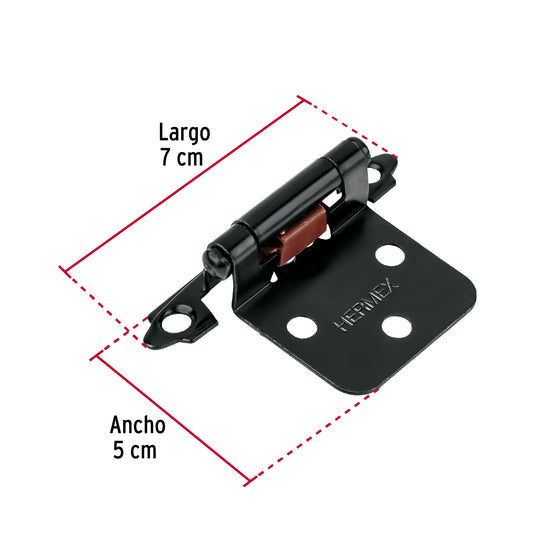 Proveedor:HermexBolsa con 2 bisagras parche de 7cm, negro, Hermex Caja con 20, 48455Fabricadas en acero Fácil instalación Para gabinetes y muebles de cocina