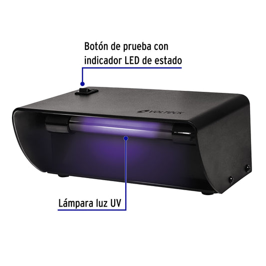 Proveedor:VolteckDetector de billetes falsos, Volteck, 48400Fabricado en ABS Interruptor de encendido y apagado Lámpara UV, diámetro T5 Para verificar autenticidad de billetes y documentos con...