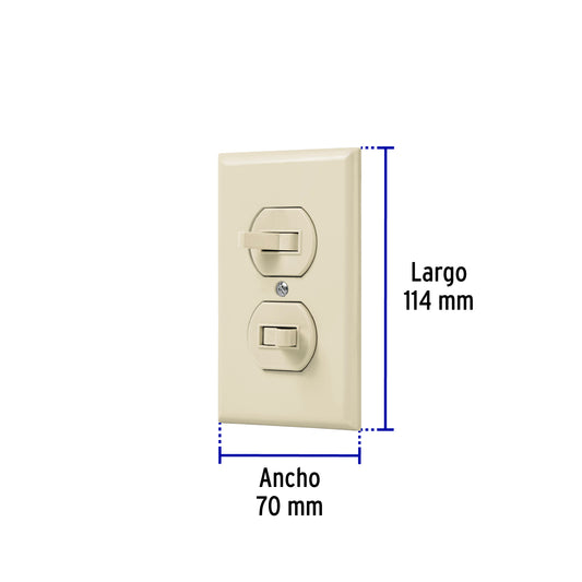 Proveedor:VolteckPlaca armada 2 interruptores sencillo, línea Standard,marfil Caja con 3, 48492Placa de ABS, contacto de nylon-policarbonato Con retardante a la flama para mayor seguridad
