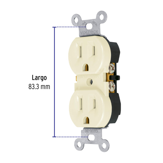 Proveedor:VolteckContacto dúplex, 2 polos 3 hilos, Standard, granel, marfil Caja con 10, 48311Fabricado en nylon-policarbonato con soporte de acero galvanizado Con retardante a la flama para mayor seguridad Montaje en placa dúplex...