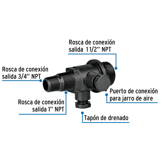 Proveedor:FosetMulticonector polipropileno para tinaco, con válvula, FOSET Caja con 6, 48081Cuerpo de polipropileno que nunca se oxida Sustituye hasta 8 conexiones en instalación Tapón para drenado Puerto de conexión para...
