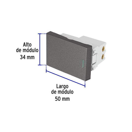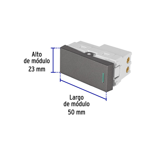 Proveedor:VolteckInterruptor sencillo acero inox de 1.5 módulos, línea Lisboa Caja con 12, 47821Tensión / Corriente: 127 V / 10 A Fabricado en policarbonato Indicador nocturno fluorescente