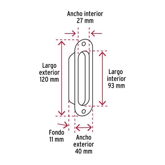 Proveedor:HermexJaladera de embutir ovalada acabado negro, Hermex Caja con 10, 47800Fabricada en acero inoxidable Para cajones de madera y metal