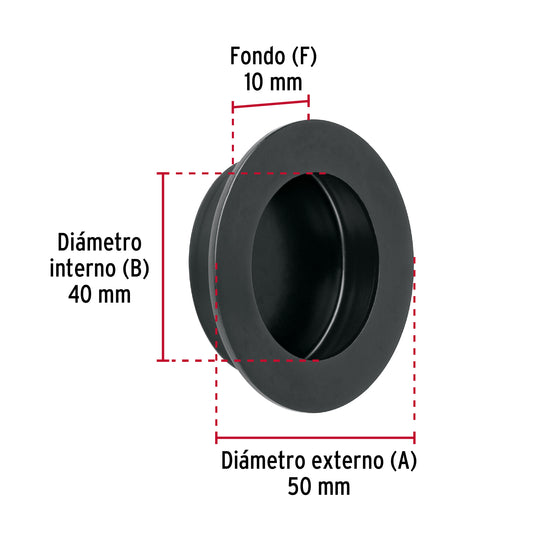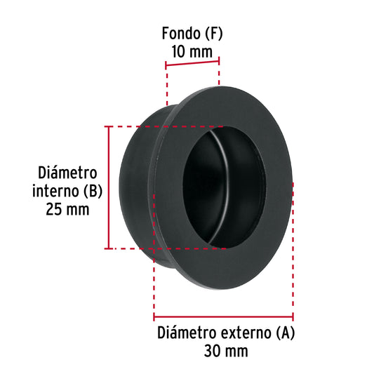 Proveedor:HermexJaladera de embutir circular No. 2 acabado negro Caja con 10, 47801Fabricada en acero inoxidable Para cajones de madera y metal