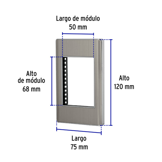 Proveedor:VolteckPlaca de acero inox con 2 ventanas 1 módulo, línea Lisboa Caja con 12, 47817Fabricada en policarbonato y acero Chasis de acero 2 Ventanas, 1 módulo Para módulos de 23 mm de altura Ventanas...